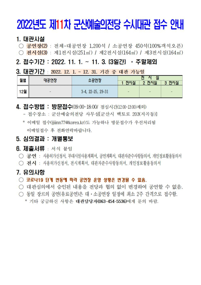 36 2022년 군산예술의전당 수시대관(11차) 접수안내 다운받기 예술의전당관리과 22.10.26 1227