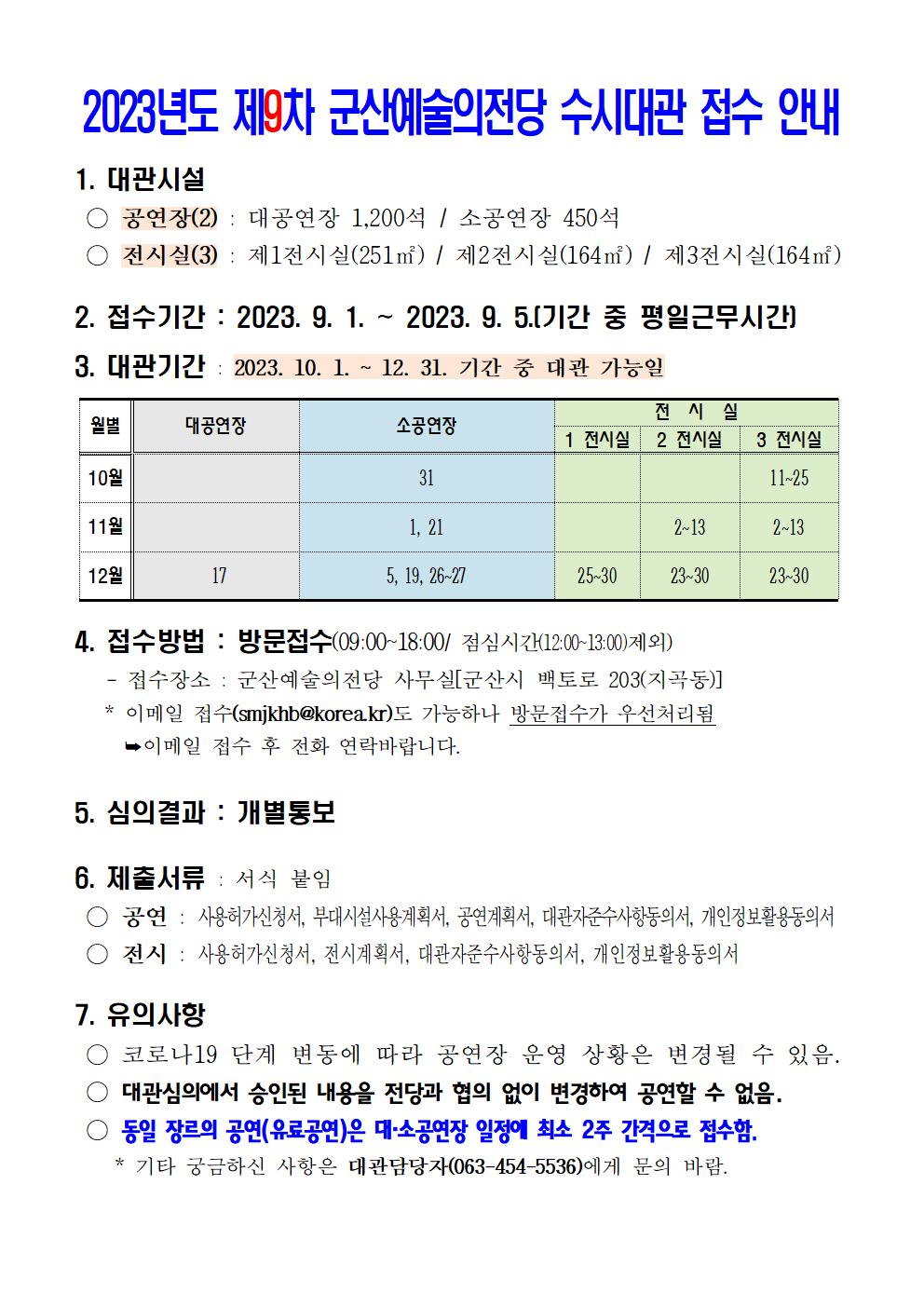 2023년도제9차군산예술의전당수시대관접수안내001
