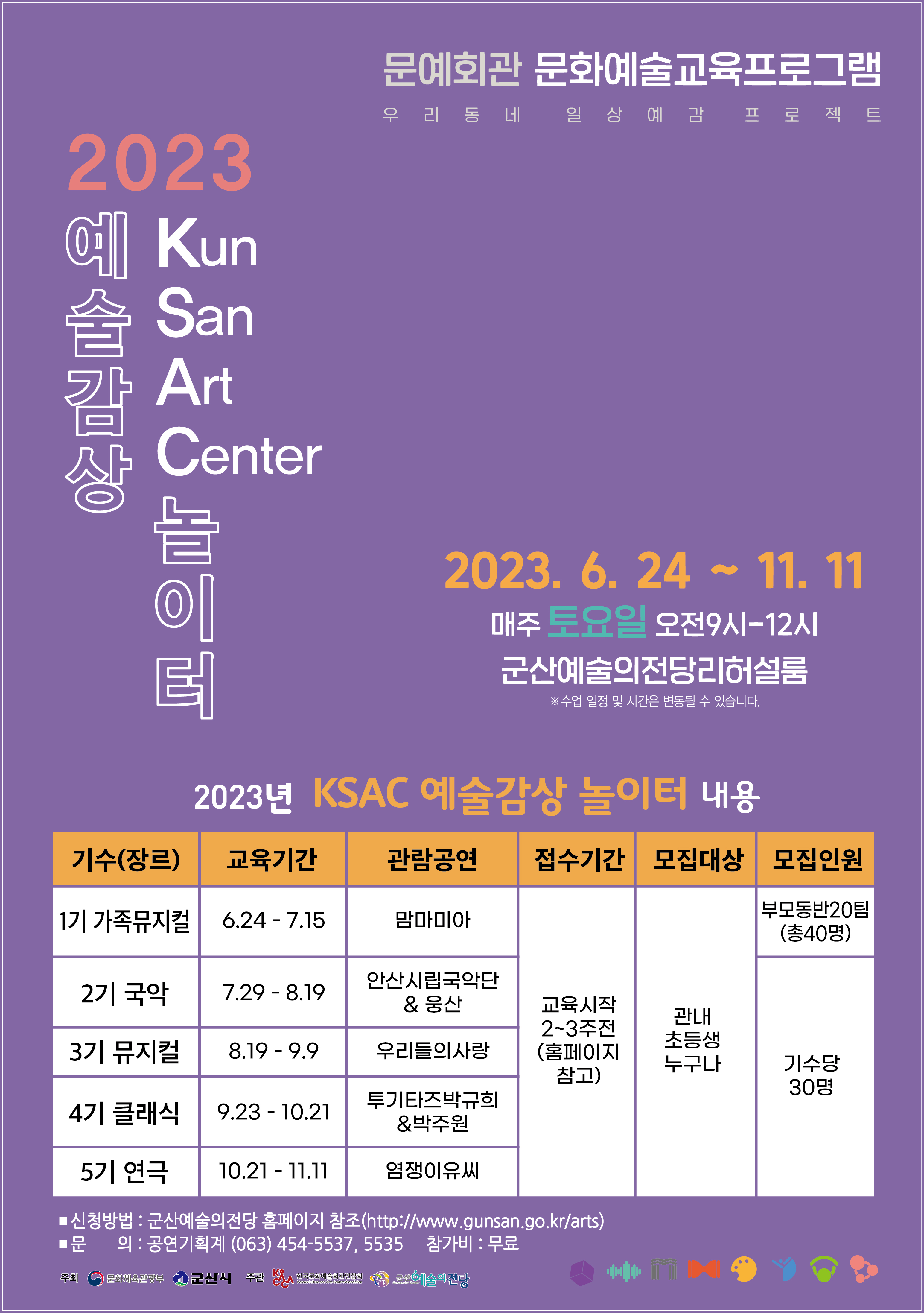 23 문예회관 문화예술교육프로그램 지원사업 KSAC 예술감상 놀이터 (1기 신청마감)