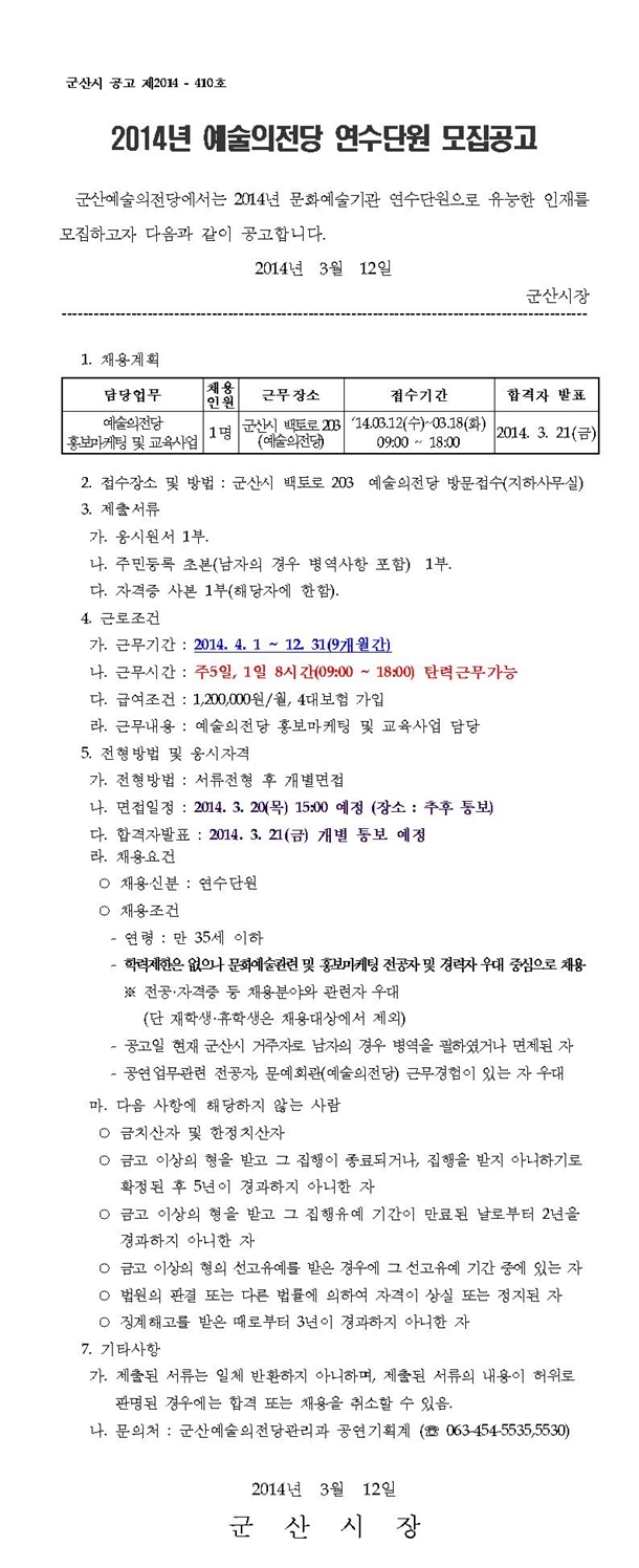 군산시청 예술의전당관리과 시설운영계에서 제작한 "공지사항"저작물은