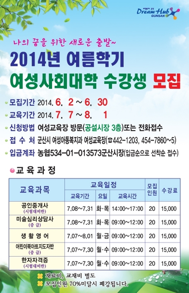 [안내]2014년 여름학기 여성사회대학 수강생 모집