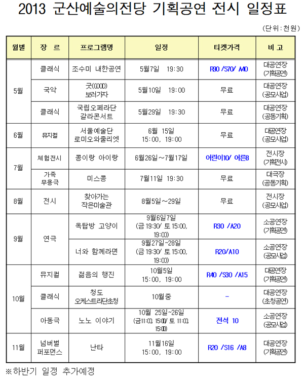 군산시청 예술의전당관리과 시설운영계에서 제작한 "공지사항"저작물은