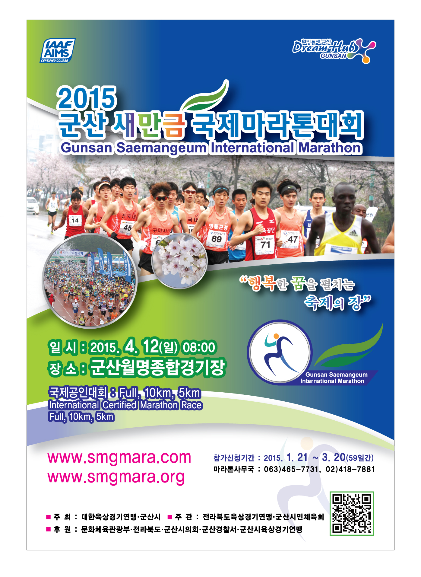 「2015 군산새만금국제마라톤대회」가 오는 4월12일(일)에 개최됩니다.