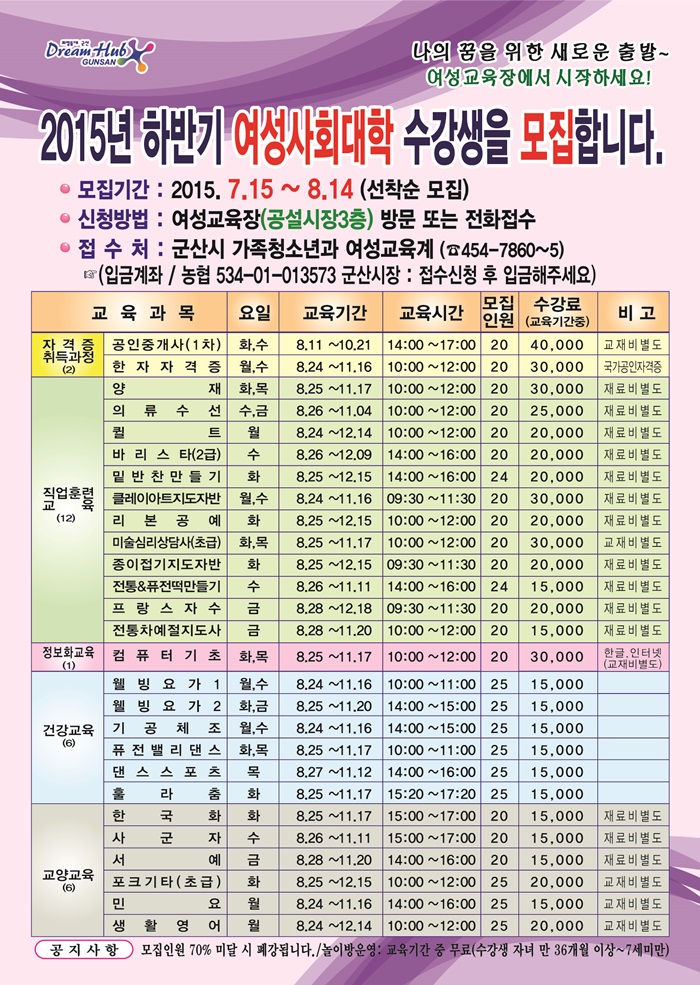[모집] 2015년 하반기 여성사회대학 수강생