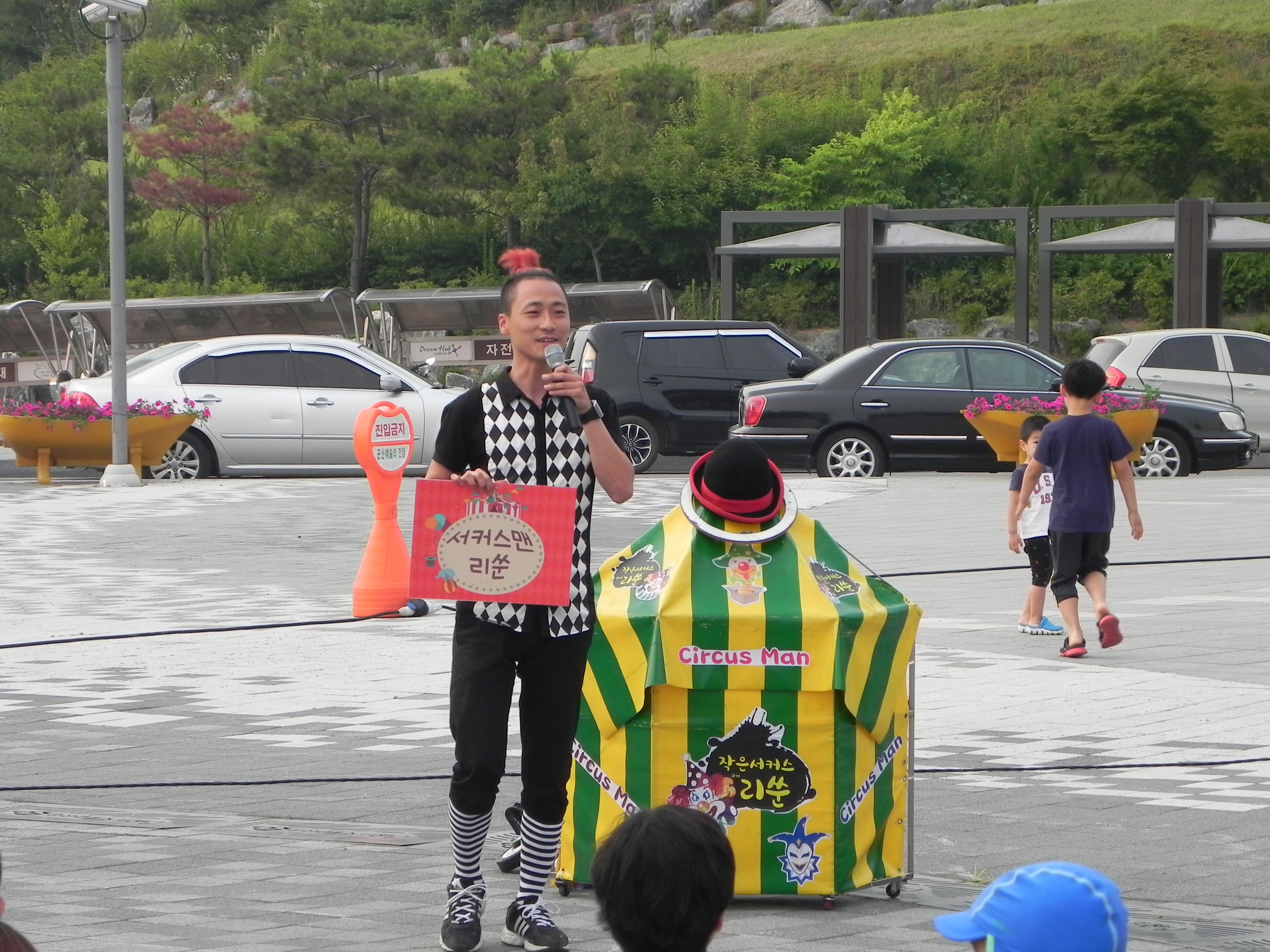 예술의전당 광장에서 이루어진 서커스 리쑨의 버스킹 공연 사진입니다.