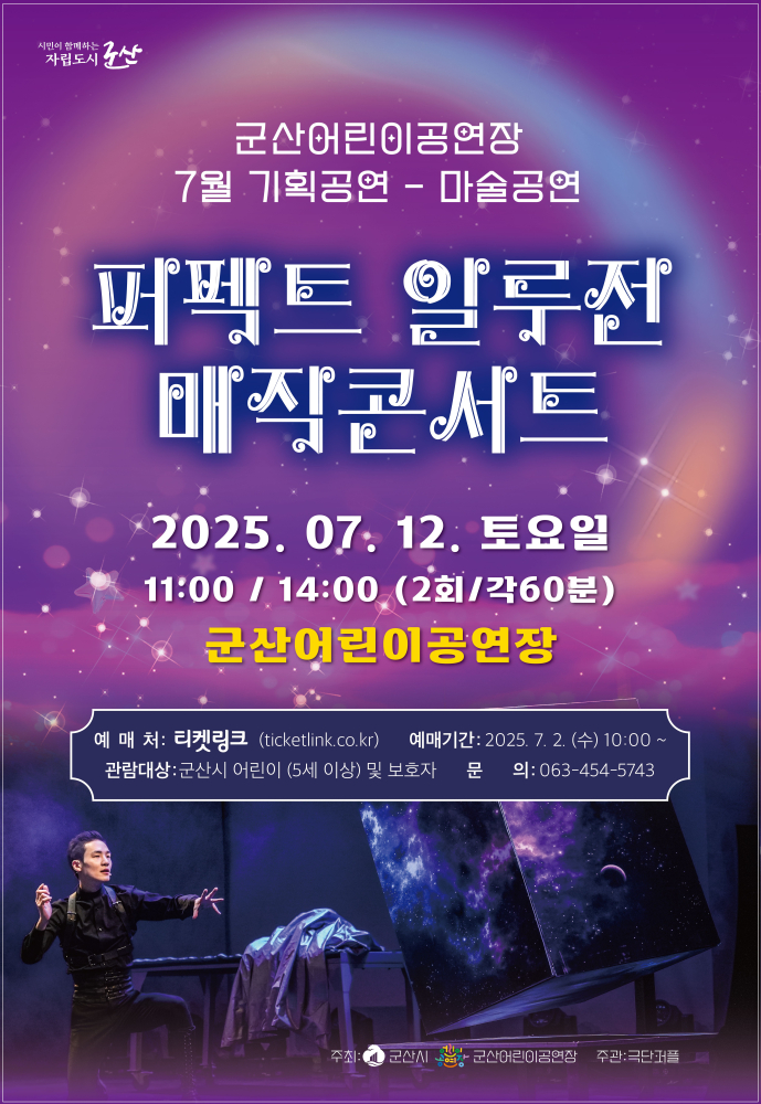 112 군산어린이공연장 7월 기획공연 '퍼펙트 일루전 매직콘서트' 안내 다운받기 예술의전당관리과 25.06.18 410