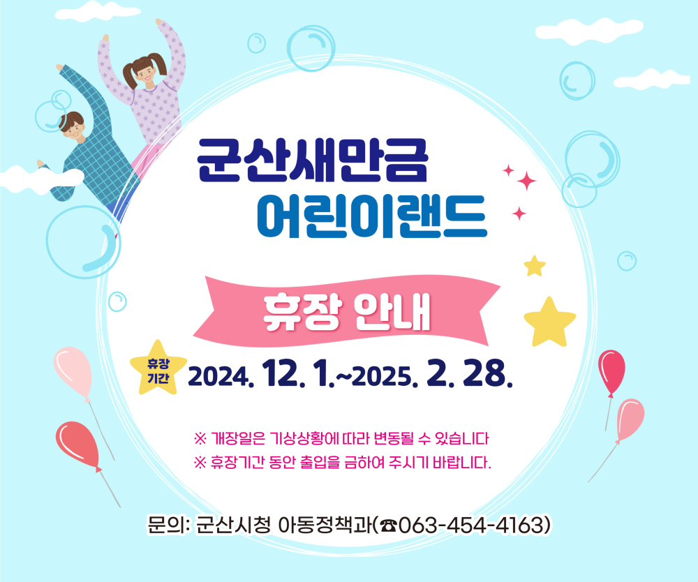 100 군산 새만금 어린이랜드 휴장 안내 다운받기 아동정책과 24.11.25 730