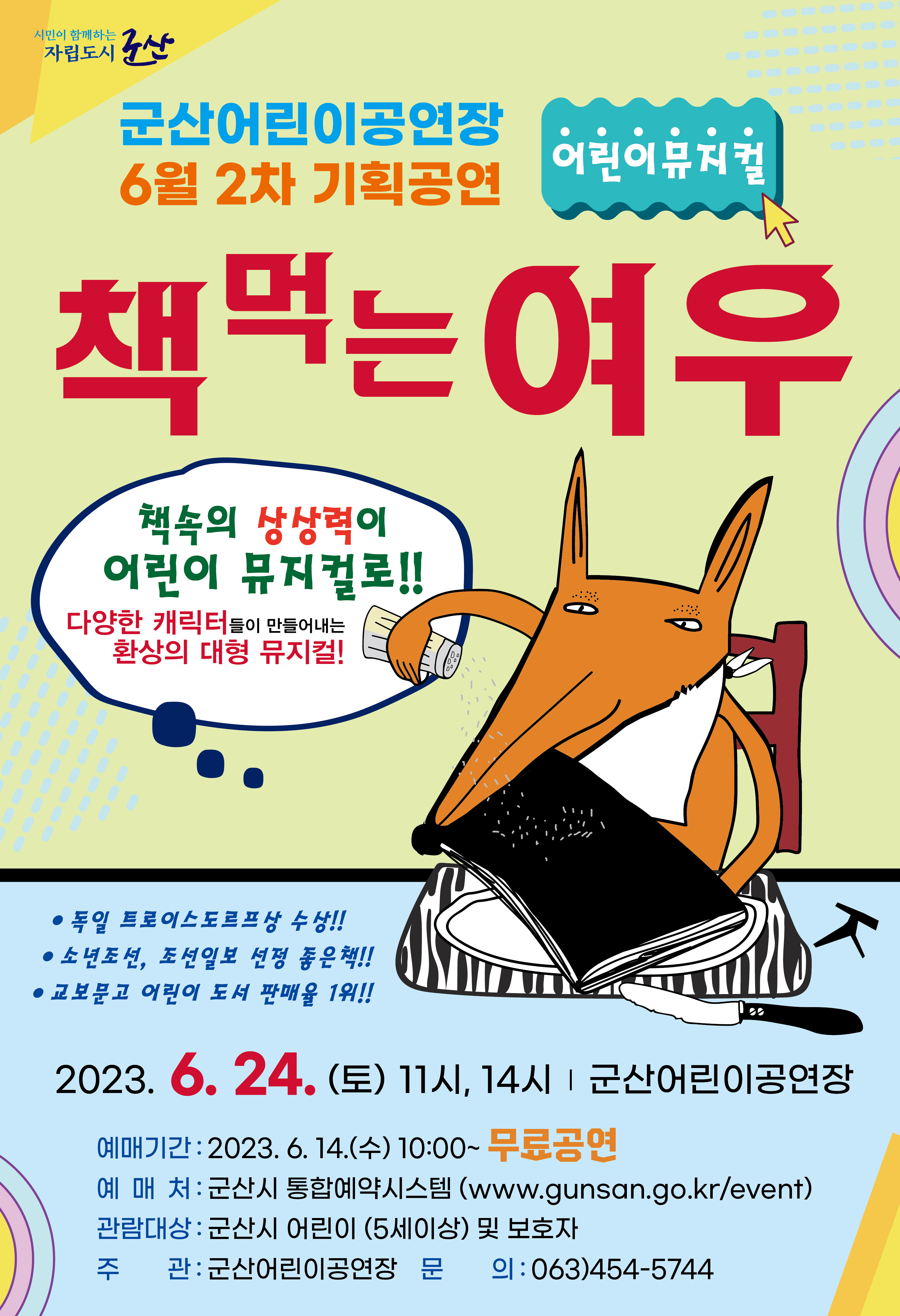 57 군산어린이공연장 6월 2차 기획공연 '책먹는 여우' 안내 다운받기 예술의전당관리과 23.06.08 688