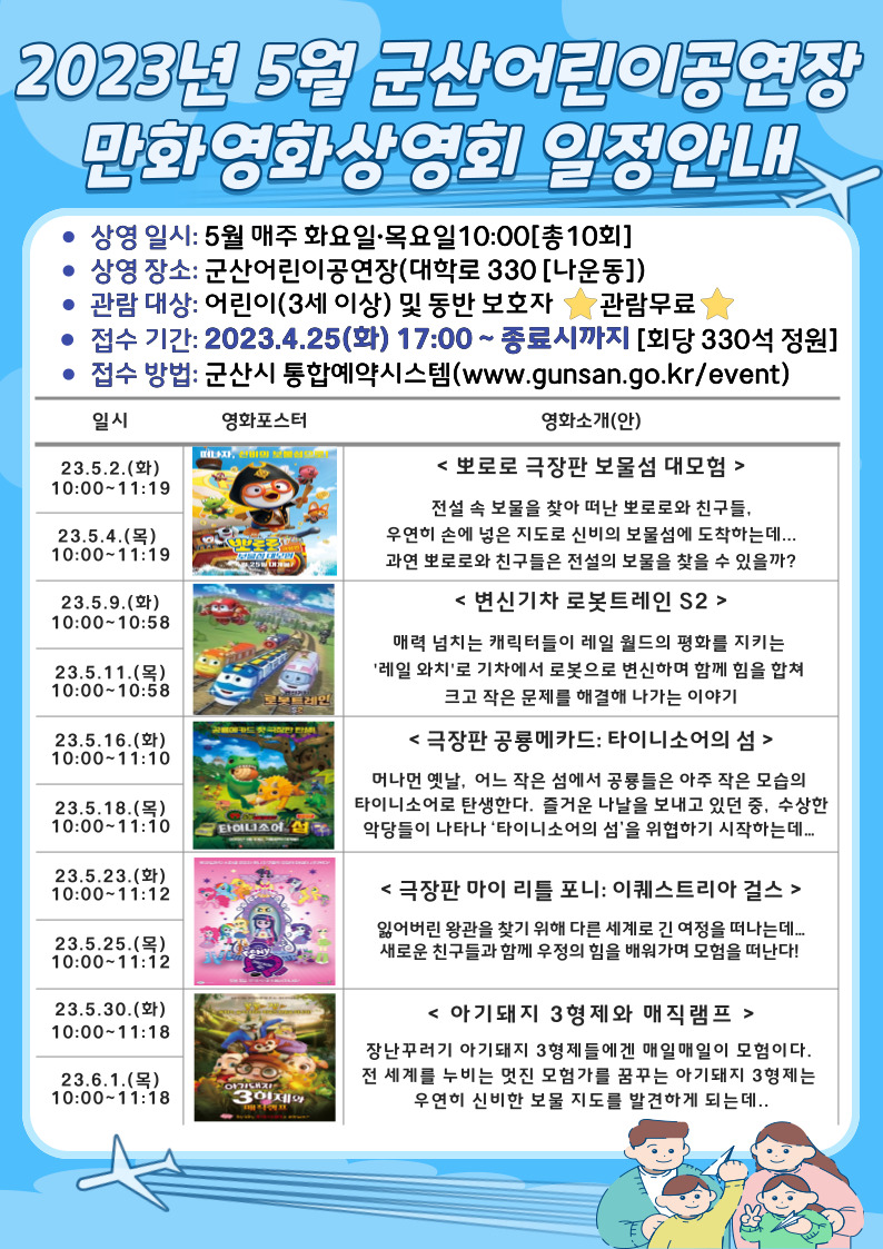 2023년 5월 어린이공연장 만화영화 상영안내