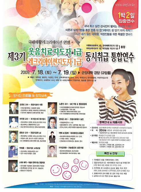 국제재활레크레이션 연맹- 제3기 웃음치료지도자 1급 레크레이션 지도자 1급 연수