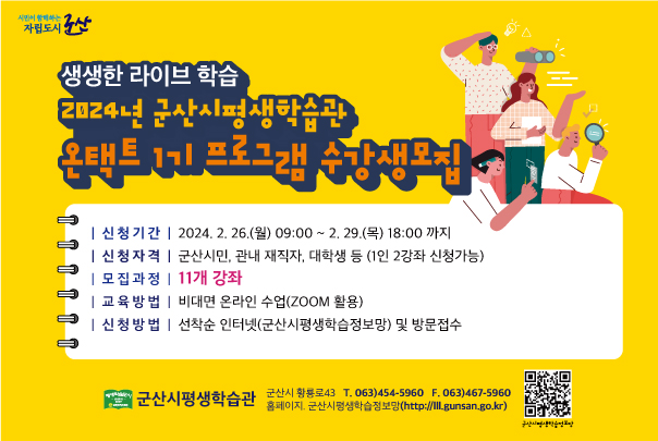 * 신청자격 : 군산시민, 관내 재직자, 대학생 등 (1인 2강좌)