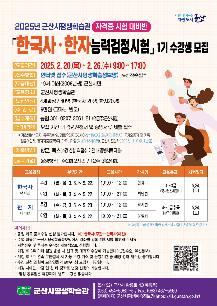 | 289 | 2025년 한국사,한자 능력검정시험1기 자격증 시험 대비반 수강생 모집 |