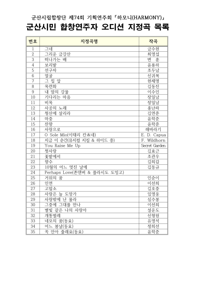25 군산시민 합창연주자 오디션 악보 (31 -35번) 다운받기 군산시립합창단 23.08.17 748