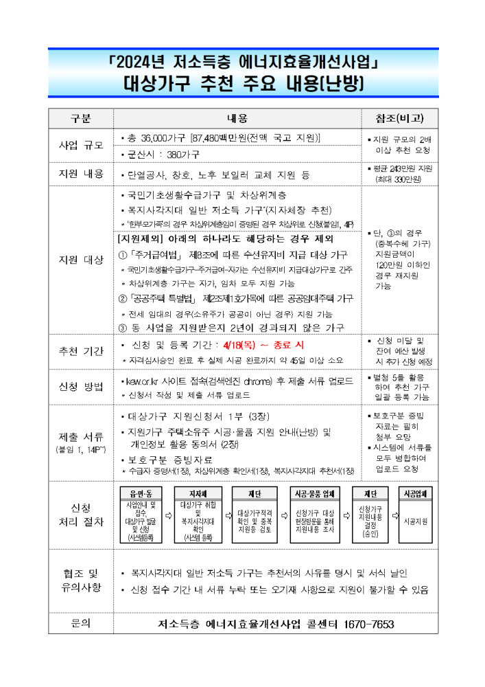 | 171 | 2024년 에너지효율 개선 사업 대상가구 추천(난방) |