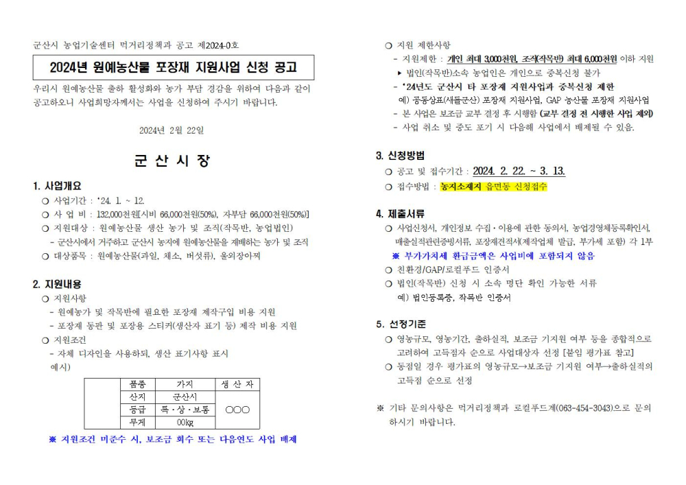 | 137 | 2024년 원예농산물 포장재 지원사업 신청 안내 |