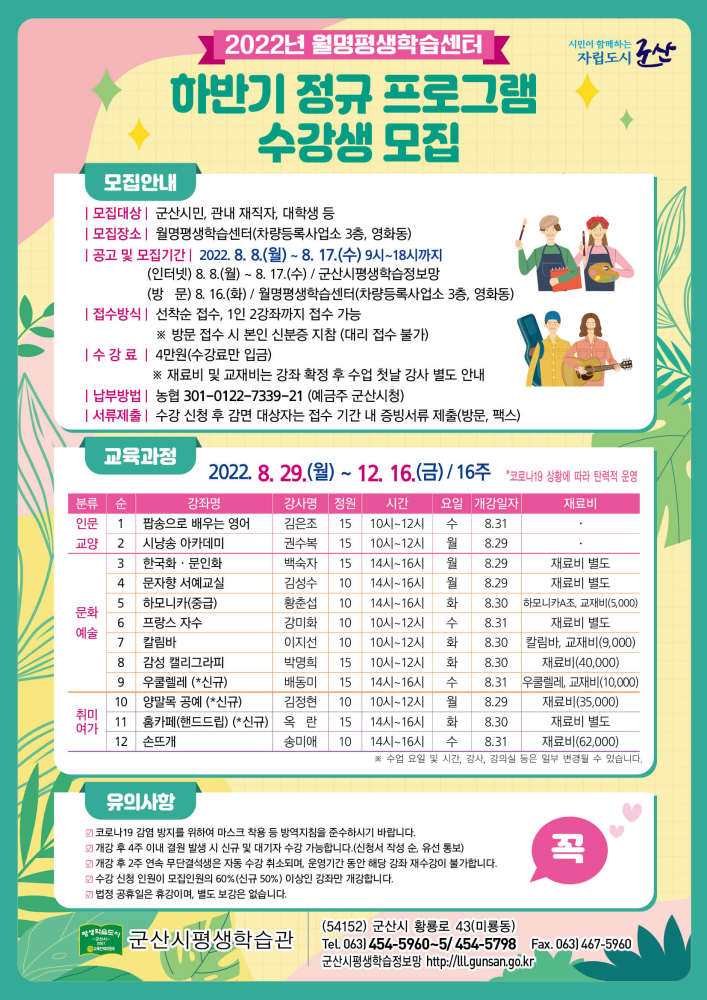 | 802 | 2022년 월명평생학습센터 하반기 정규 프로그램 수강생 모집 |
