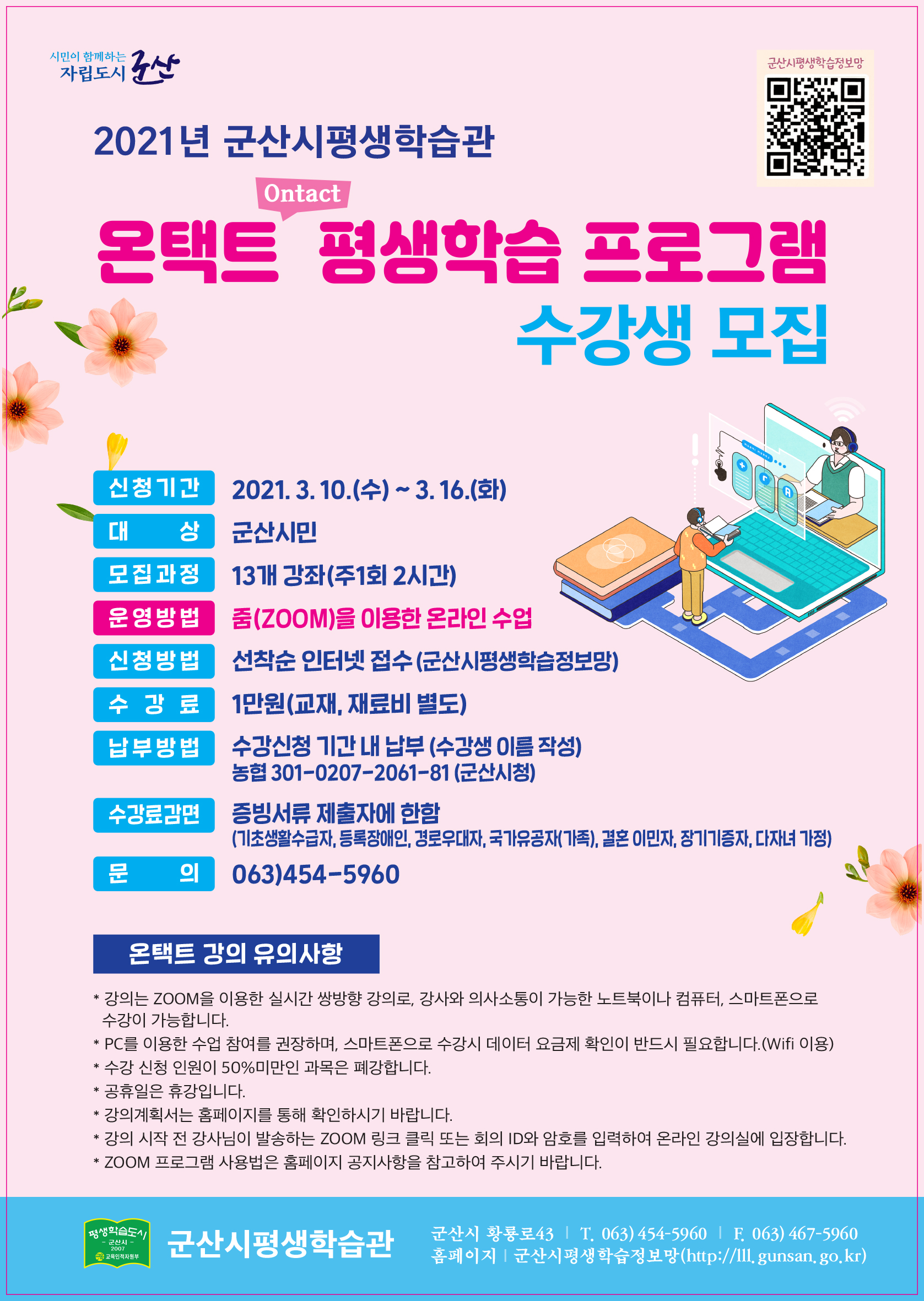 2021년 군산시평생학습관 온택트 평생학습 프로그램 수강생 모집