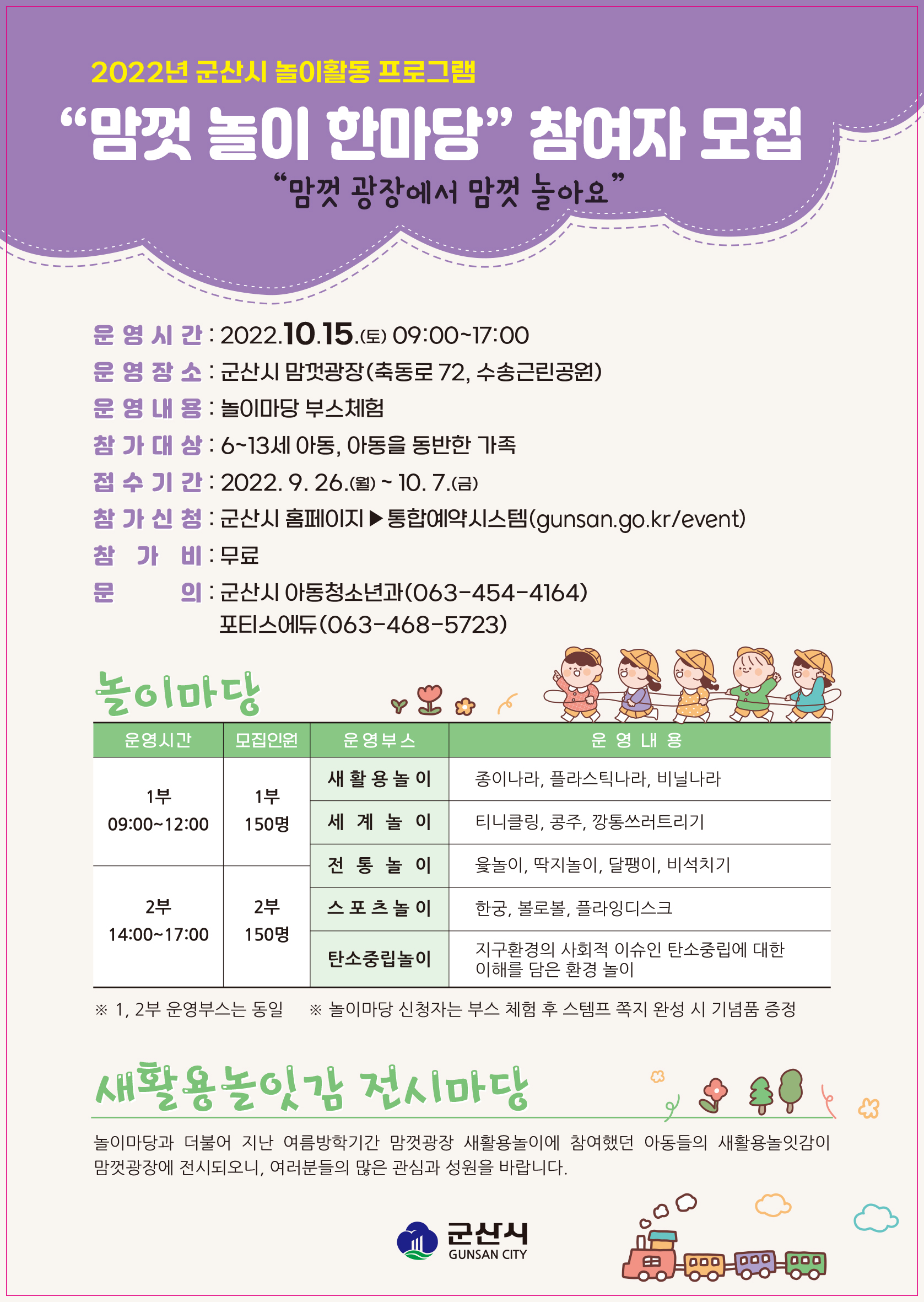 | 153 | 2022년 맘껏 놀이 한마당 운영 홍보 및 안내 |