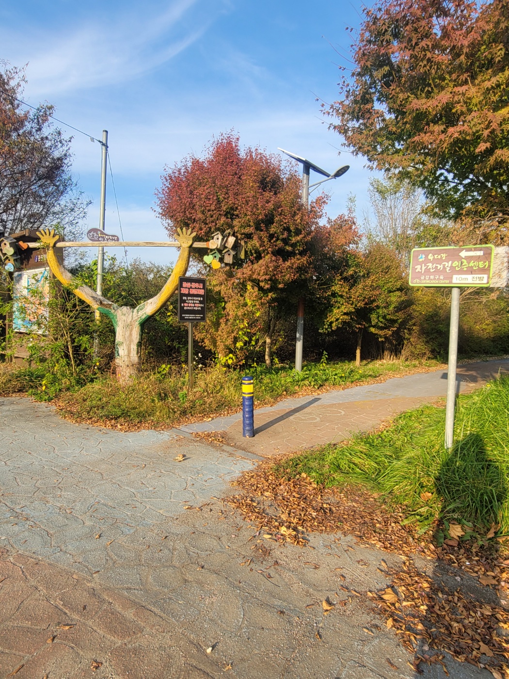 금강호 국민여가 캠핑장 입구쪽 자전거 도로에 자동차가 2대나 나옵니다