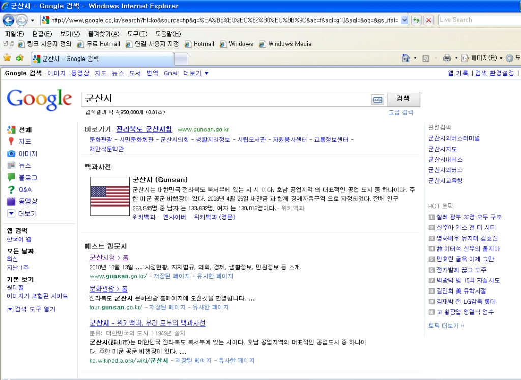 군산시의 인터넷 홍보능력에 대한 의심이 든다.'구글'이라는 검색사이트에서 '군산시'를 검색하는 순간, 군산시에 대한 백과사전 소개를 보고 작은 충격을 받았다.