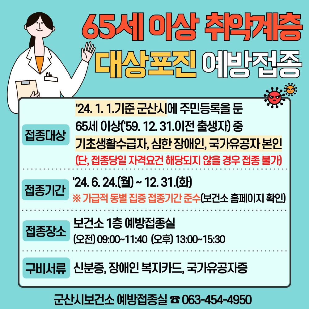 | 122 | 2024년 취약계층 대상포진 예방접종 안내 |