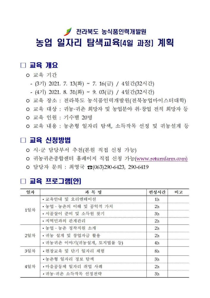 | 239 | 2021년 전라북도 농식품인력개발원 농업일자리 탐색교육 대상자 모집 안내 |