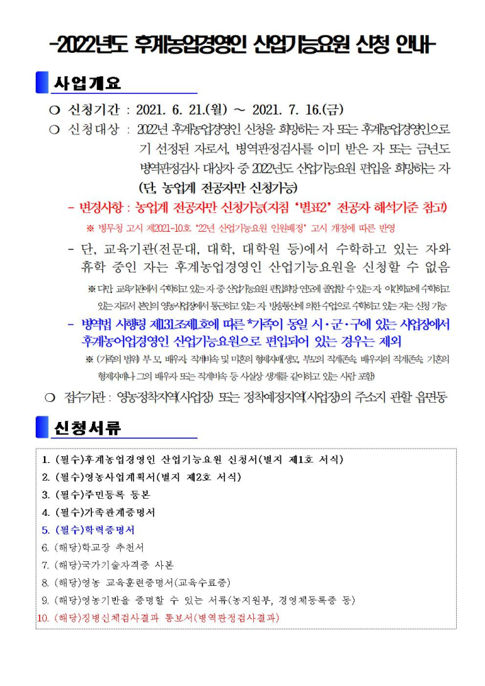 | 242 | 2022년 후계농업경영인 산업기능요원 신청 안내 |