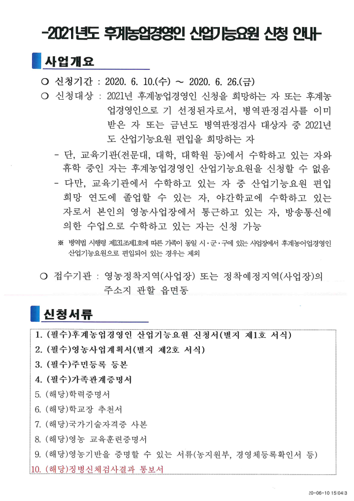 | 164 | 2021년도 후계농업경영인 산업기능요원 신청 안내 |
