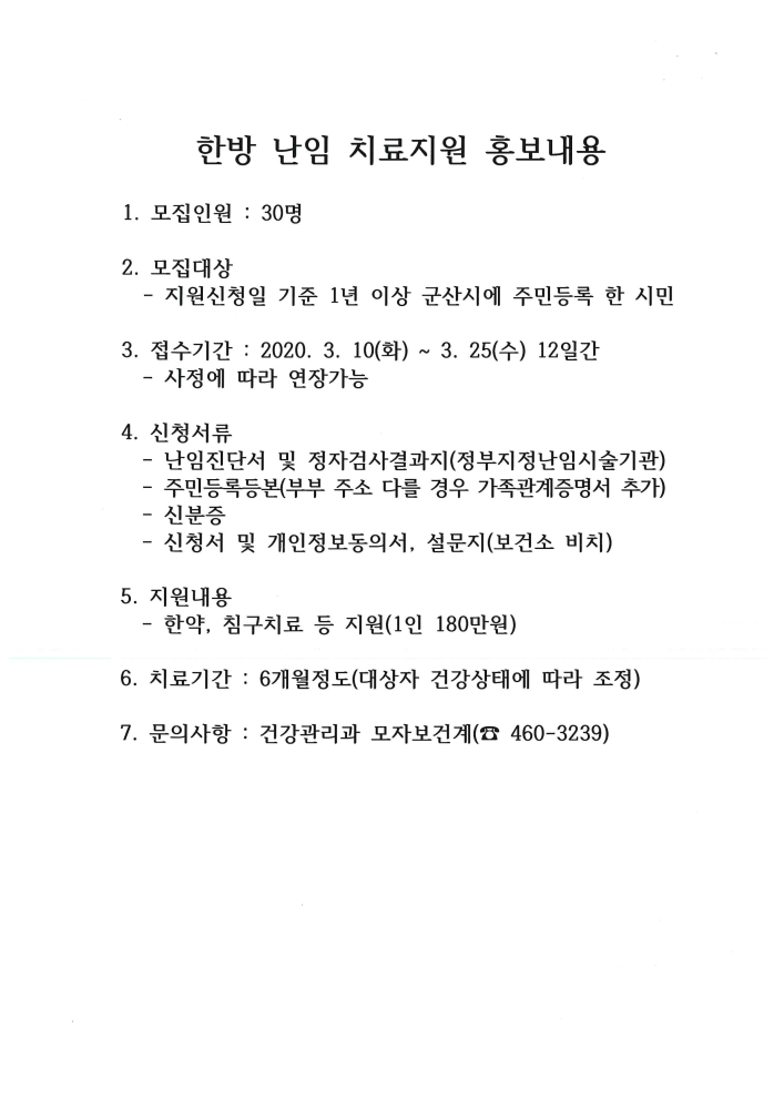 | 147 | 한방 난임 치료지원 사업 참여자 모집 안내 |