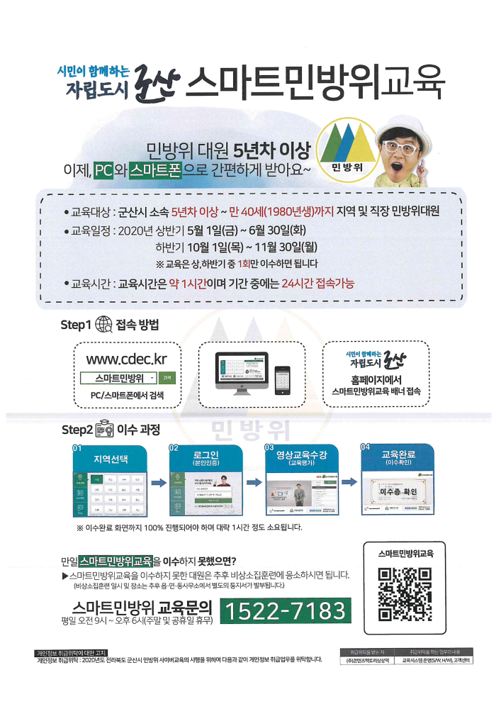 | 133 | 민방위 5년차 이상 스마트 민방위교육 안내 |