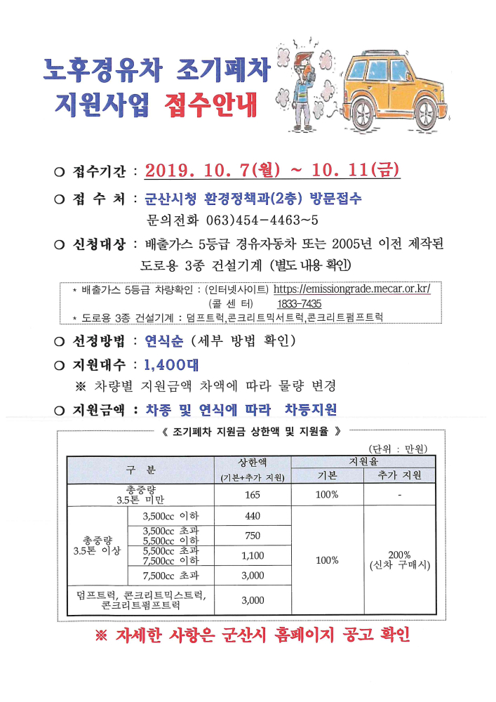 | 106 | 노후경유차 조기폐차 지원사업 안내 |