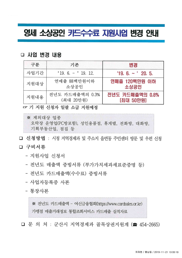 | 109 | 영세 소상공인 카드수수료 지원사업 변경안내 |