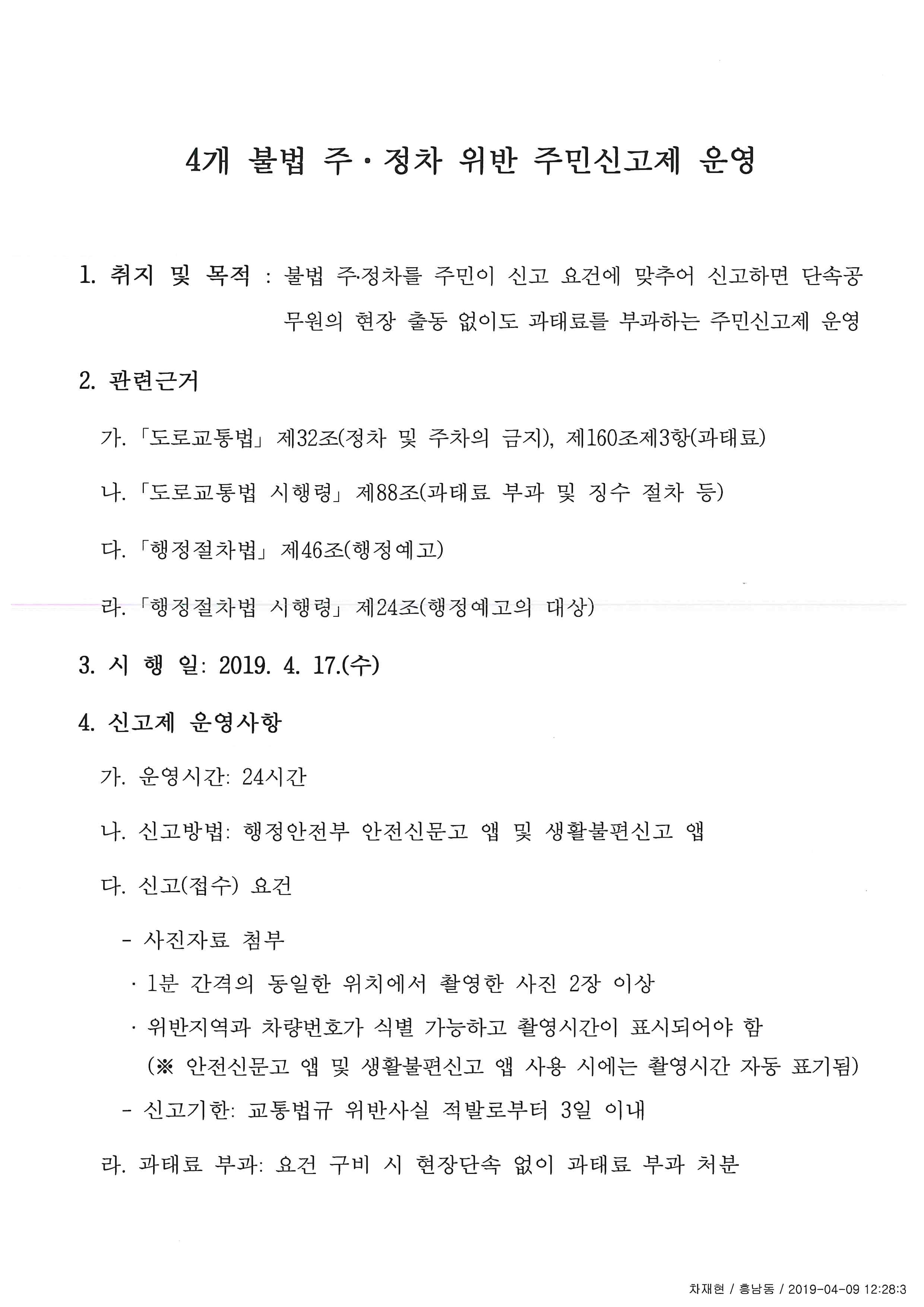 4개불법 주정차 위반 주민신고제 운영