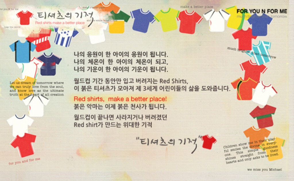 바로 '티셔츠의 기적'입니다. 열정적으로 응원하기 위해 입었던 붉은 티셔츠를 기부하여