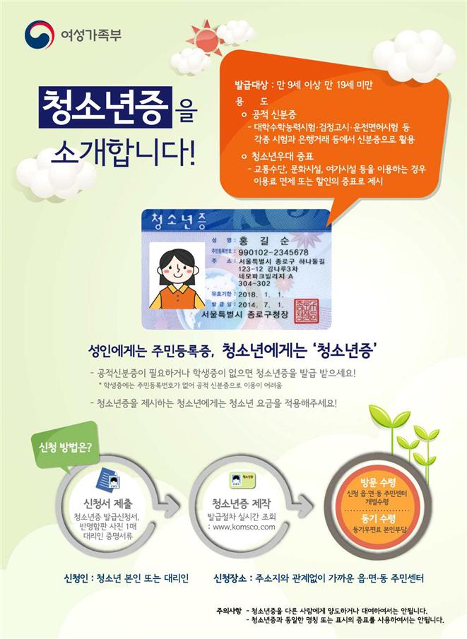 대한민국 청소년 여러분 있재는 청소년도 청소년증을 가지고 단히시길바랍니다