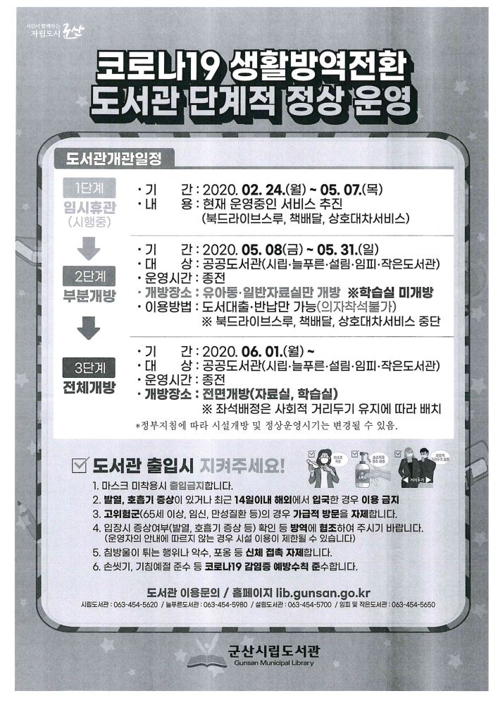 | 19 | 군산시 도서관 단계적 운영에 따른 안내 |