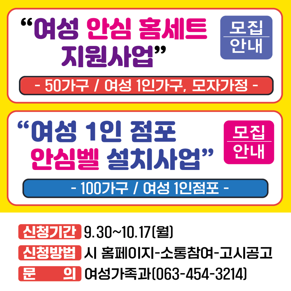 5702 여성 1인가구(점포)안심 홈세트 및 안심벨 지원 사업 안내 다운받기 여성가족과 22.10.04 6691
