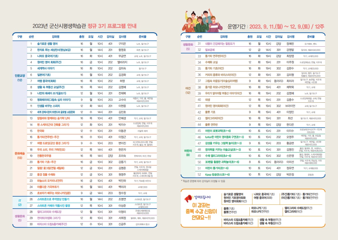 2023년 군산시평생학습관 정규 3기 프로그램 수강생 모집