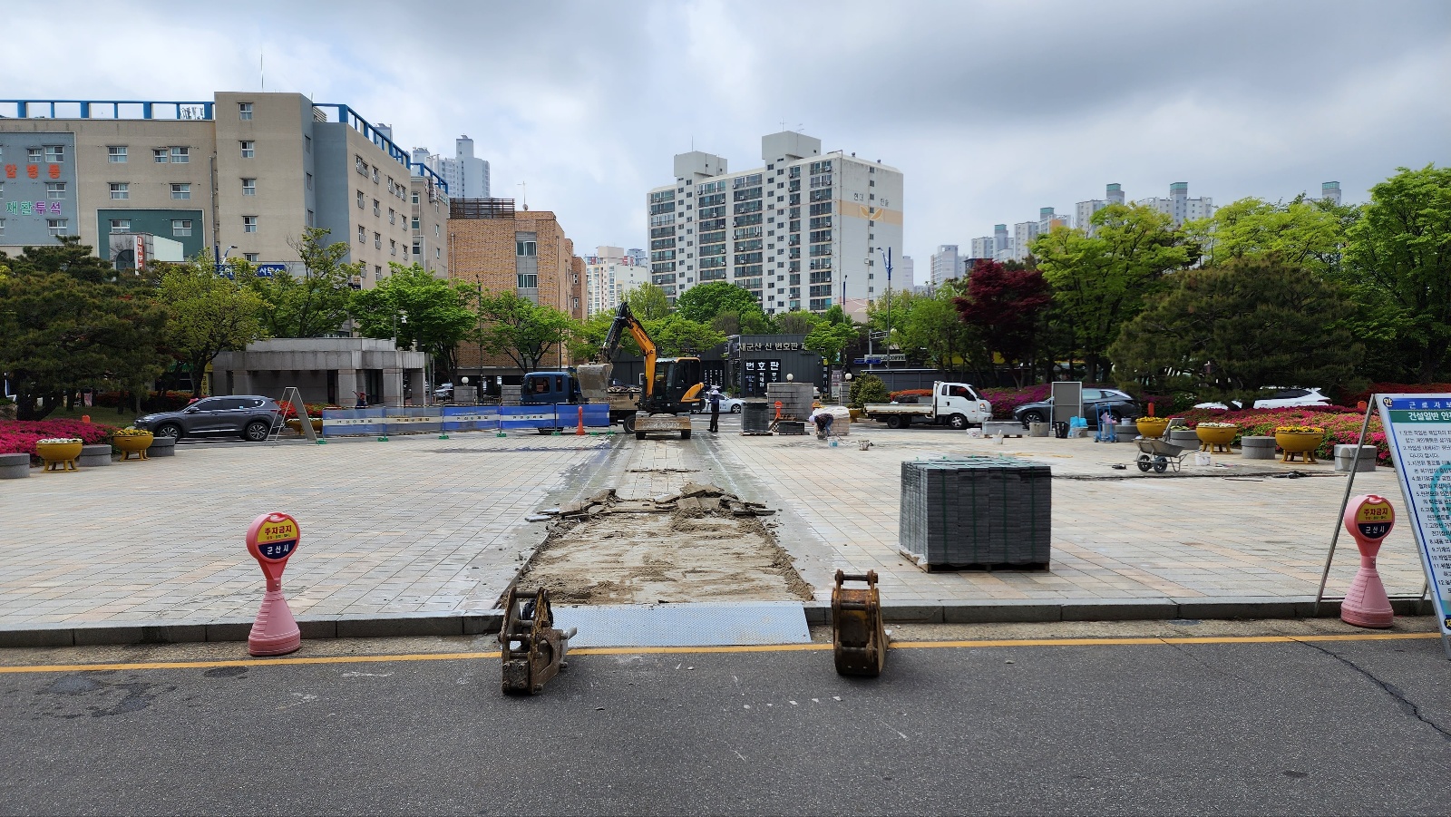 시청내 멀쩡한 보도블록을 제거 하네요.......