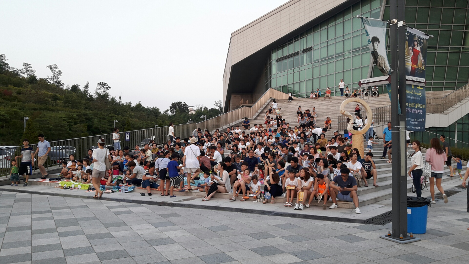 사랑하는 군산예술의전당 직원여러분 이번 07월 30일(토)야외공연 성공하여 군산시민과 관광객들이 관람을 하여 너무 활기찬 공연있 되여 무대와 계단 관계석있 참으로 좋아 습니다