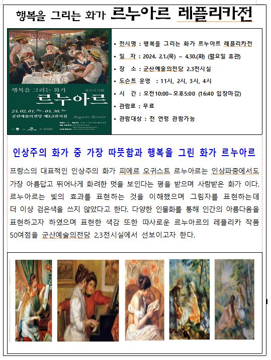 | 378 | '행복을 그리는 화가' 르누아르 레플리카 전(展) |