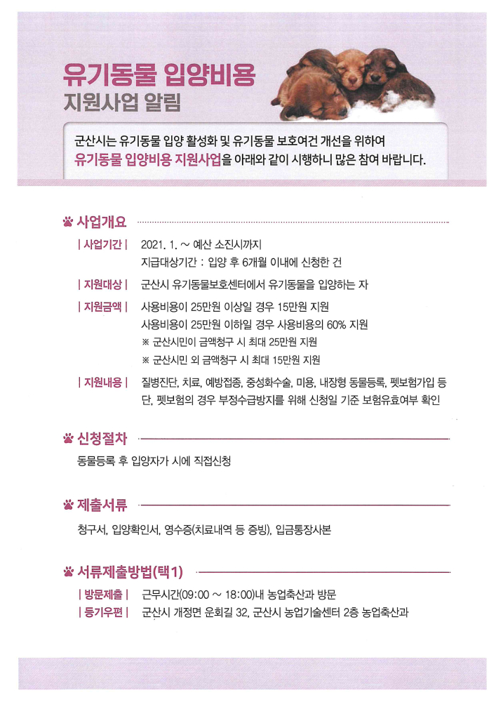 | 116 | 유기동물 입양비용 지원사업 알림 |