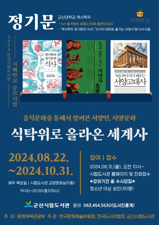 ◯ 강 연 명 : 2024년 군산시립도서관 「식탁 위로 올라온 세계사」(2024년 지혜학교 공모사업)