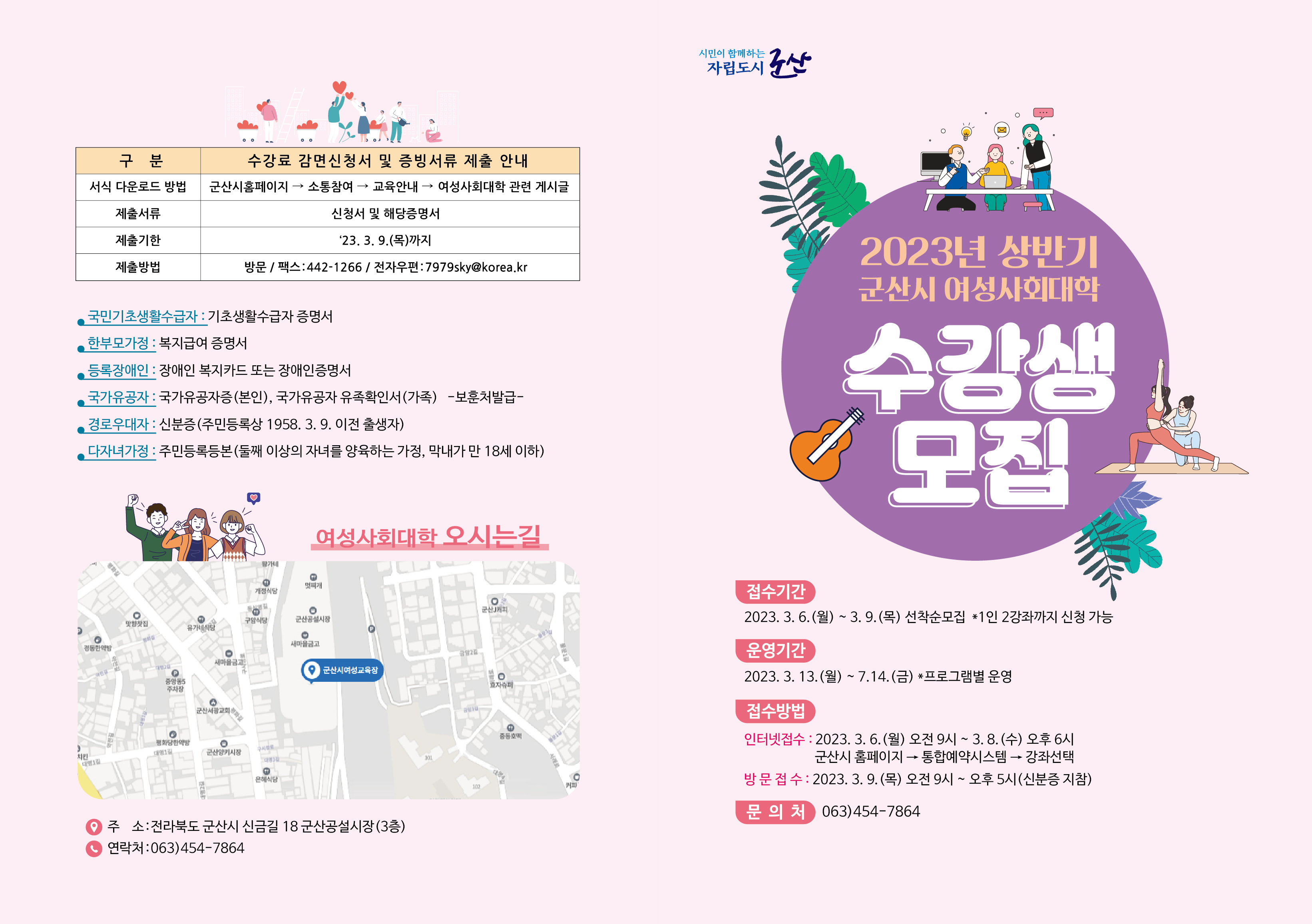 6. 기타 자세한 문의 사항은 여성사회대학(063-454-7864)로 문의하여 주시기 바랍니다.