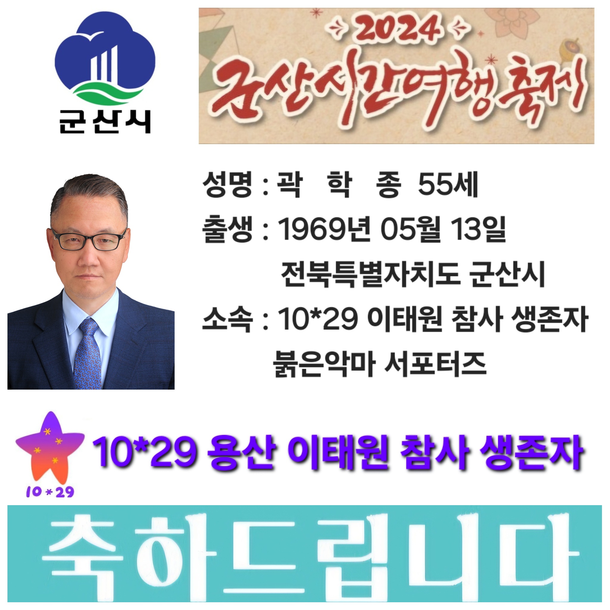 사랑하는 군산시민 여러분 군산시관광진흥과 과장님과 많은 직원 여러분 진심으로 2024 군산시간여행 축제를 진심으로 축하드립니다