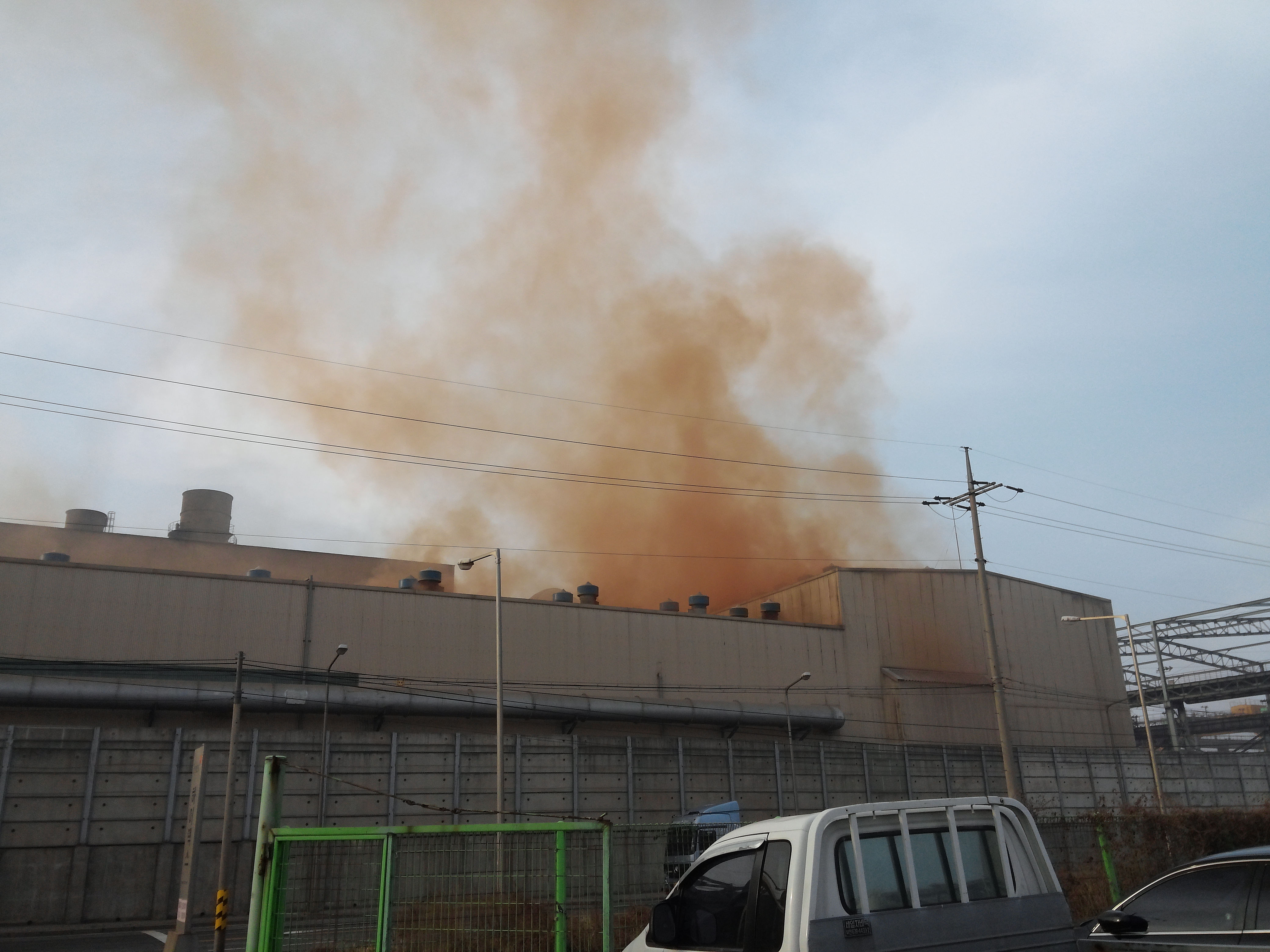2014.02.27일 아침 공장에서 나오는 연기를 찍은 것 입니다.