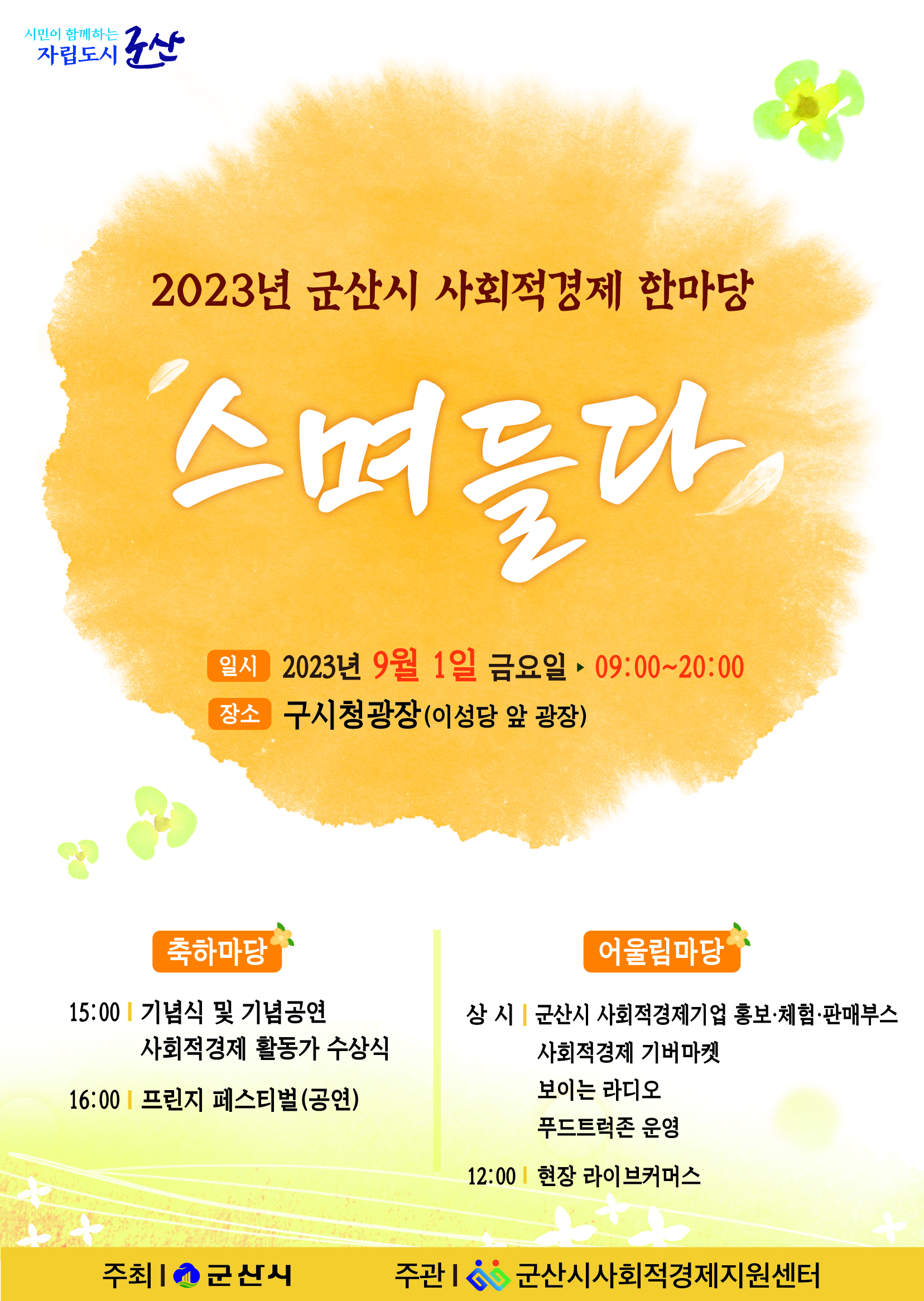 ❍ 행사명 : 2023년 군산시 사회적경제 한마당 「스며들다」