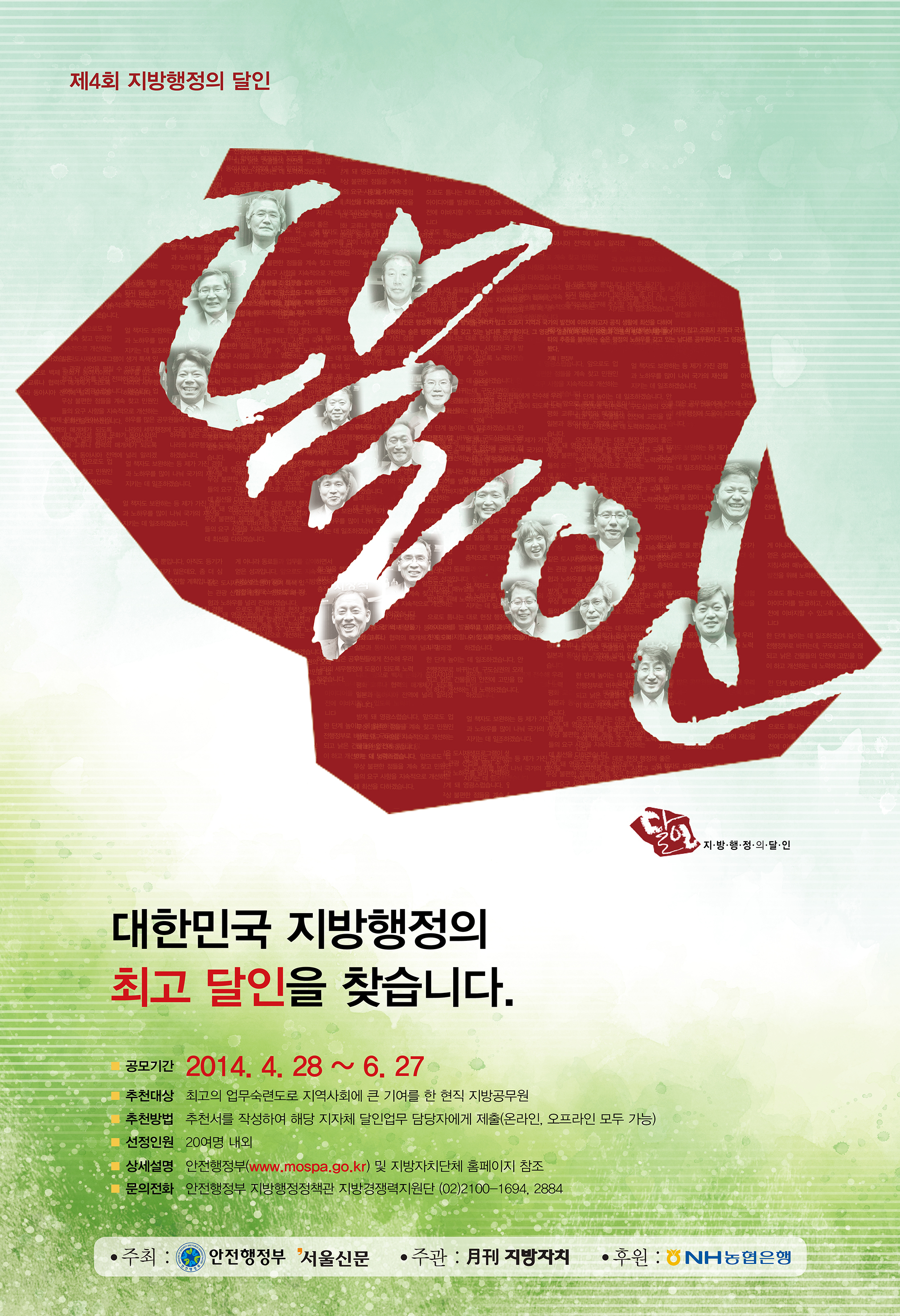 ◦ 선발대상 : 현직공무원 ※ 그간 달인 선발에 지원하여 탈락한 자도 실적을 보완하여 지원 가능 ◦ 선발규모 : 20명 내외 ◦ 공모기간 : 2014. 4. 28 ~ 6. 27 ◦ 선발분야 : 총 8개분야 (일반행정, 사회․복지, 문화․관광, 지역경제, 지역개발, 주민안전, 정부3.0, 규제개혁) ◦ 선발절차 - 본인추천 : 공무원이 본인 추천서, 실적서, 10인 이상의 연서(붙임2 제출서식 참조) 를 총무과 인사계에 메일, 직접방문 및 사송으로 제출 - 타인추천 : 국민 누구나 지방행정의 달인으로 선발됨이 타당하다고 판단되는 지방공무원에 대해 추천서(붙임2 제출서식 참조)를 작성하여 피추천공무원이 작성한 실적서 및 10인상의 연서(붙임2 제출서식 참조)와 함께 총무과 인사계에 메일 (pakyw0070@korea.kr), 직접방문 및 우편(군산시 시청로 17, 군산시청 4층 총무과)으로 제출 | ||