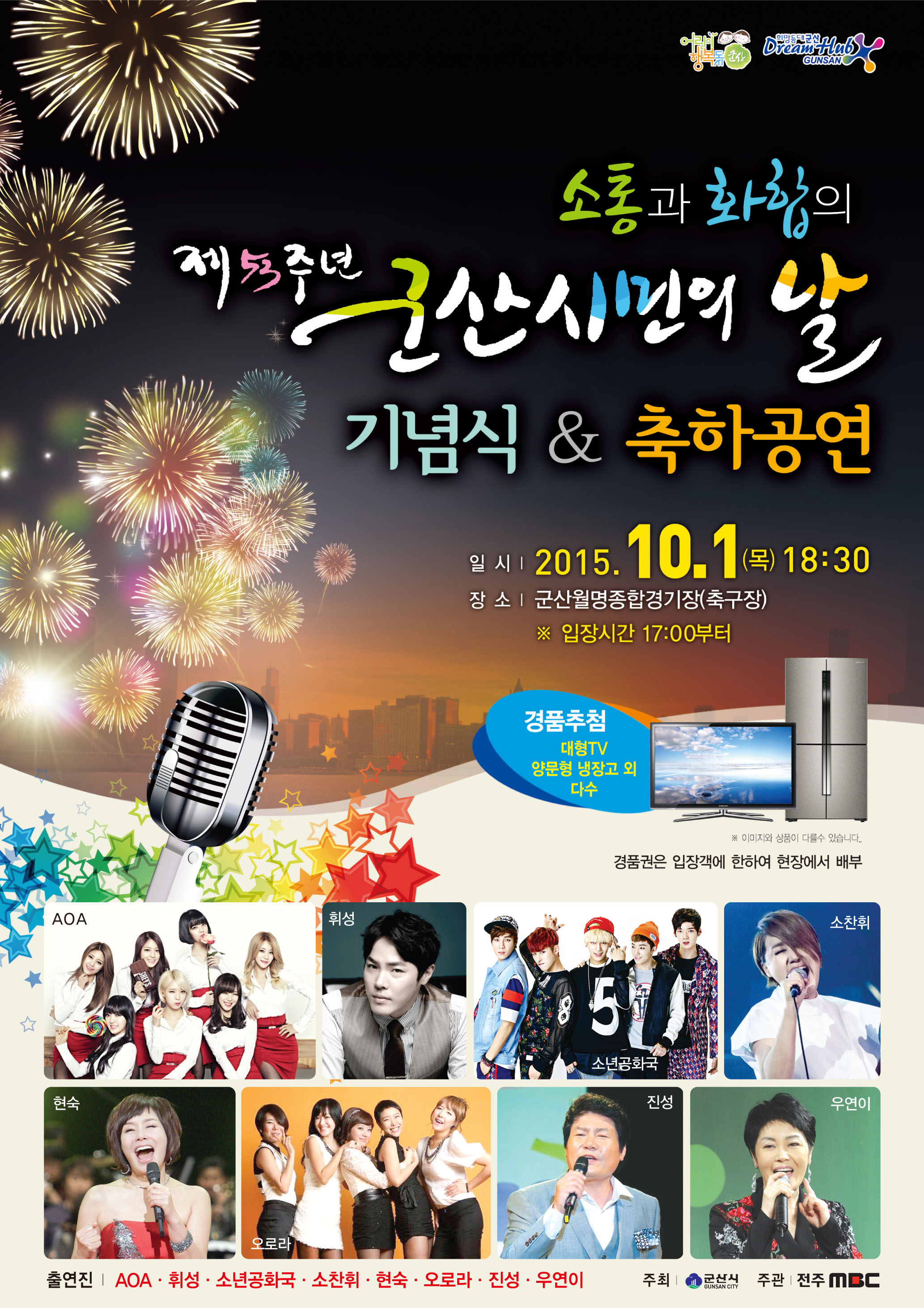 ▪ 10. 1(목) 18:30 ~ 21:30 기념식 및 축하공연, 경품추첨