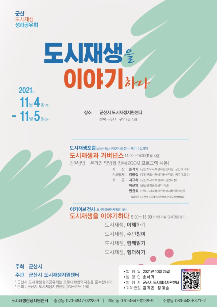| 169 | 군산 도시재생 성과공유회 "도시재생을 이야기하다" 개최 안내 |